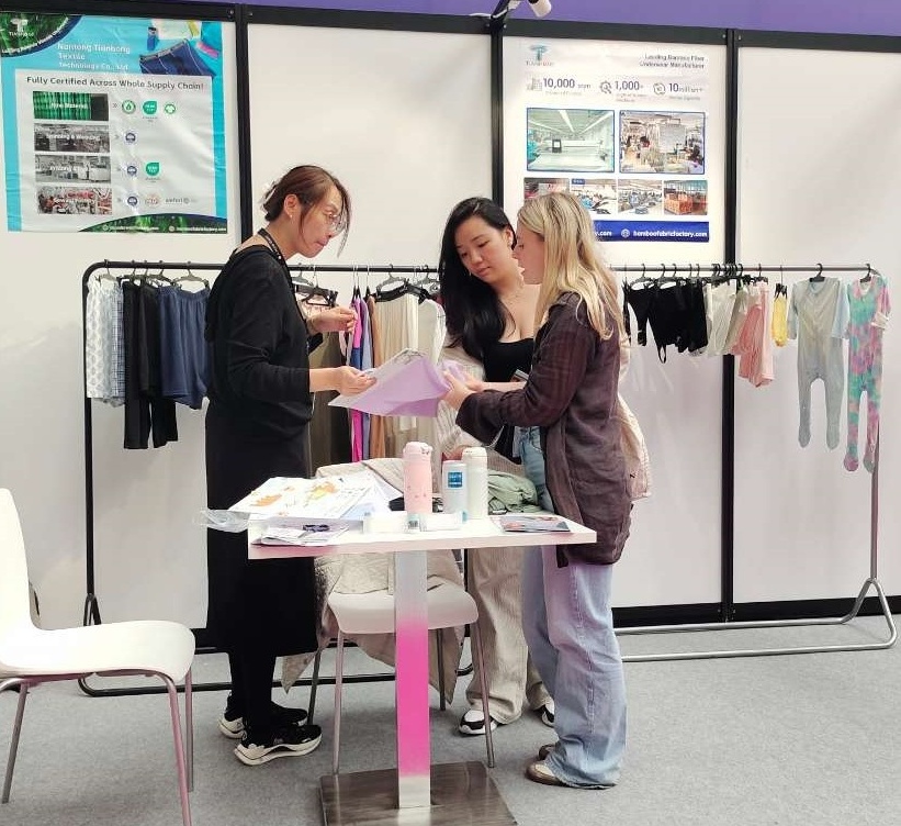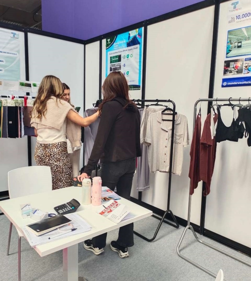 ในงานแสดงสินค้าในปีนี้ Tianhong นำเสนอชุดชั้นใน Viscose ไม้ไผ่คุณภาพสูงของเราอย่างภาคภูมิใจและเทคนิคการออกแบบขั้นสูง บูธของเราได้รับความสนใจอย่างมากโดยมีผู้เข้าชมจำนวนมากตื่นเต้นเกี่ยวกับผ้า viscose ไม้ไผ่ที่เป็นเอกลักษณ์ของเราเทคนิคการตัดเย็บขั้นสูงและความมุ่งมั่นอย่างแรงกล้าต่อความยั่งยืน